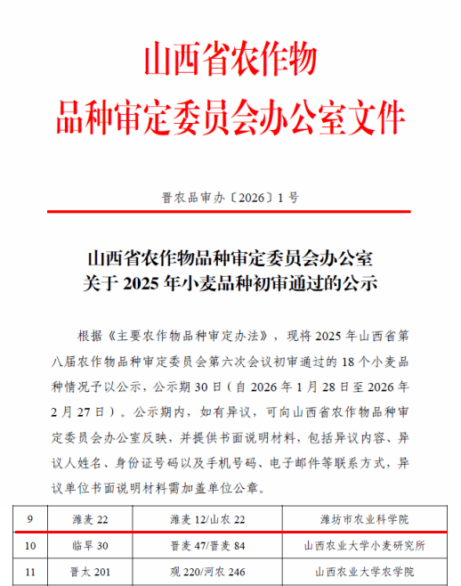 近日,学院与潍坊市农业科学院联合选育的小麦新品种“潍麦22”成功通过山西省农作物品种审定委员会初审,这标志着双方协同育种工作取得新突破。