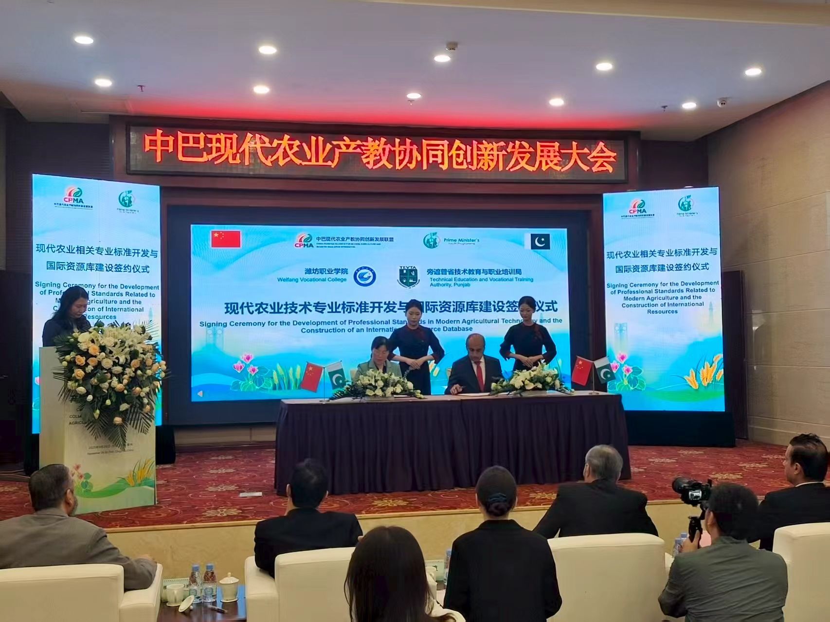 大会以“深化中巴现代农业产教融合,推动协同创新发展”为核心,旨在搭建中巴两国在现代农业领域产教协同平台,促进资源共享、技术交流与成果转化。会上,由潍坊工程职业学院、潍坊职业学院及山东畜牧兽医职业学院牵头成立中巴现代农业产教协同创新发展联盟,携手巴基斯坦旁遮普省技术教育与职业培训局及相关企业、科研机构等单位,围绕中巴农业技术教育现代化、产学研融合发展以及人文交流等领域开展合作,实现战略互补,为中巴经济走廊升级建设注入新动能。